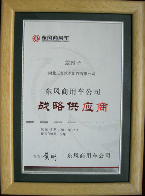在這次盛會上,正奧公司載譽而歸,喜獲三項項殊榮,分別是:東風商用車戰(zhàn)略供應商、“2011年度優(yōu)秀供應商”和“2011年度質(zhì)量優(yōu)勝“。