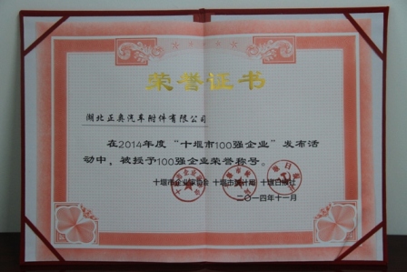 湖北正奧集團(tuán)公司獲得十堰百?gòu)?qiáng)企業(yè)榮譽(yù)稱號(hào)